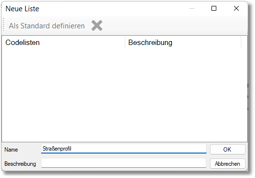 Codeliste für Profile erstellen