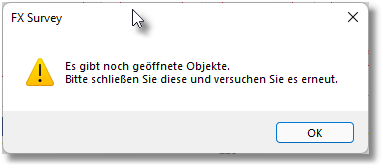 Über den Button können Reiter entfernt werden. Ein Codelistenreiter kann nicht gelöscht werden, wenn in der Codeliste noch geöffnete Objekte vorhanden sind (siehe Arbeiten mit der Codeliste). Eine Warnmeldung macht darauf aufmerksam: