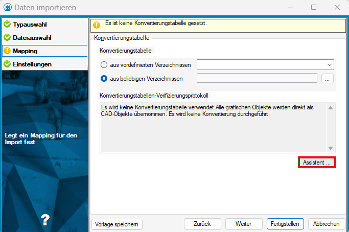 Unter dem Reiter Mapping kann über den Button Assistent eine Zuordnung erfolgen.