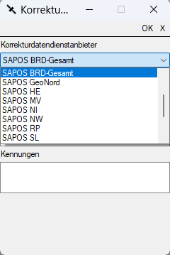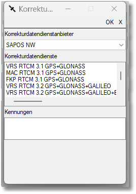 Anschließend wird der Korrektudatendienst ausgewählt. Dieser ist abhängig davon, wie viele Satellitensysteme auf ihrer Antenne lizenziert sind und welches Endgerät Sie nutzen.