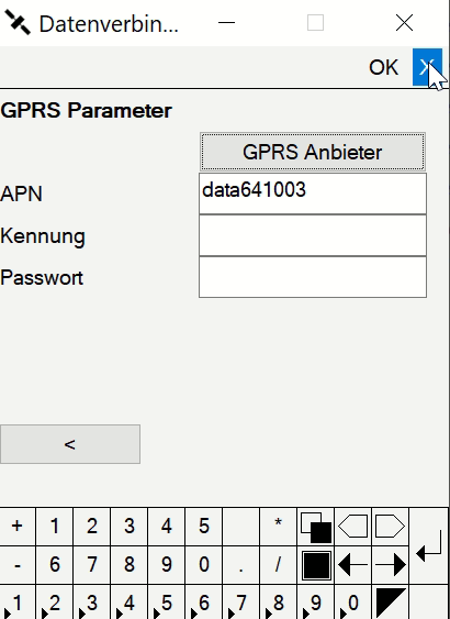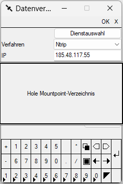 Bevor der Mountpoint geholt werden kann, müssen zunächst die Informationen zur SIM Karte (entweder die in der Antenne oder die im Rechner) eingetragen werden.