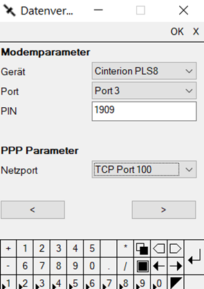 Bei den Modemparametern die PIN der SIM Karte eingeben. Die anderen Werte können in der Regel übernommen werden.