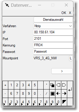 VRS / MAC / FKP = Art des Mountpoints (in der Regel wählen Sie VRS)
