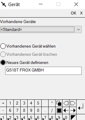Hier kann ein neues Gerät definiert werden. Klicken Sie dazu auf "Neues Gerät definieren" und geben dort den gewünschten Namen für die Antenne ein und bestätigen Sie mit <OK>, um zurück zum Menü Gerät zu kommen.