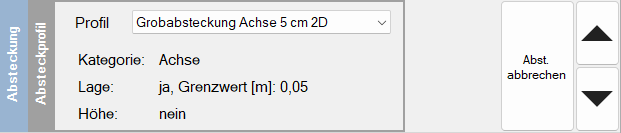 Nach der Auswahl des Absteckungsprofils klicken Sie auf den Pfeil rechts unten.