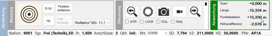 Die Höhendifferenz durch den VZ Wert aus Hz, Vz aktuell wird auch aktualisiert, wenn kein Prisma im Lock ist und kein Tracking aktiv ist.