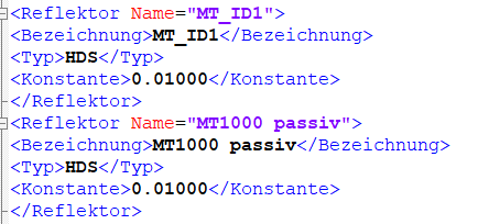 Hier finden Sie eine xml Datei mit den Knoten der vordefinierten Reflektoren als Beispiel. Bitte nutzen Sie diese Datei gerne um die entsprechenden Blöcke Ihrer genutzten Reflektoren in Ihre kfp zu kopieren.