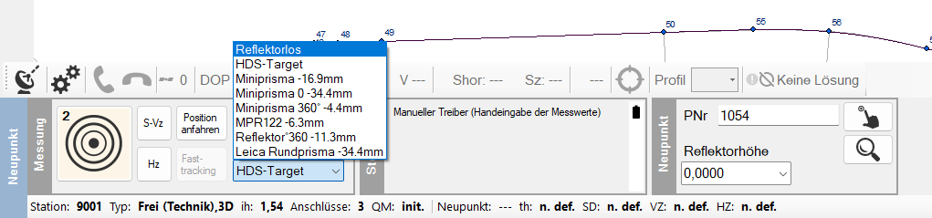 Anschließend werden die einzelnen Reflektoren dem Tachymeter zugeordnet.
