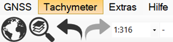 Wenn das Modul M-FX Tachymeter Steuerung lizenziert ist, haben Sie in der Menüleiste einen Eintrag Tachymeter. Über das Menü starten Sie dann das zugehörige Instrumentenpanel.